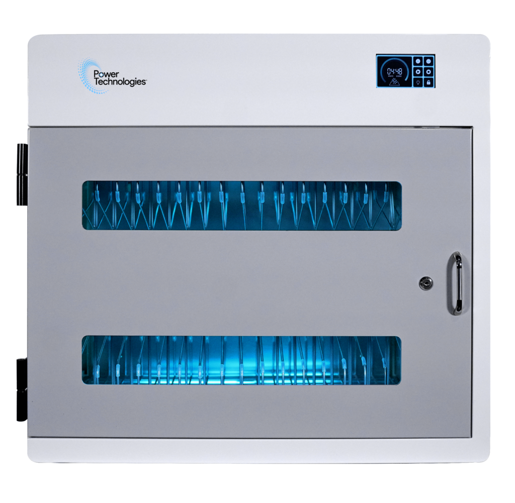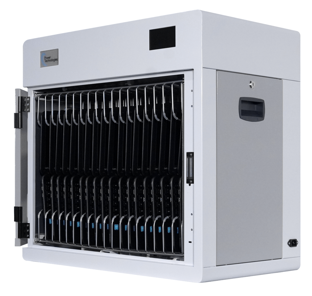 18 Device - UV-C Sanitization and Charging Cabinet. Designed to charge and sanitize up to 18 Chromebooks, Laptops, Tablets & Devices.