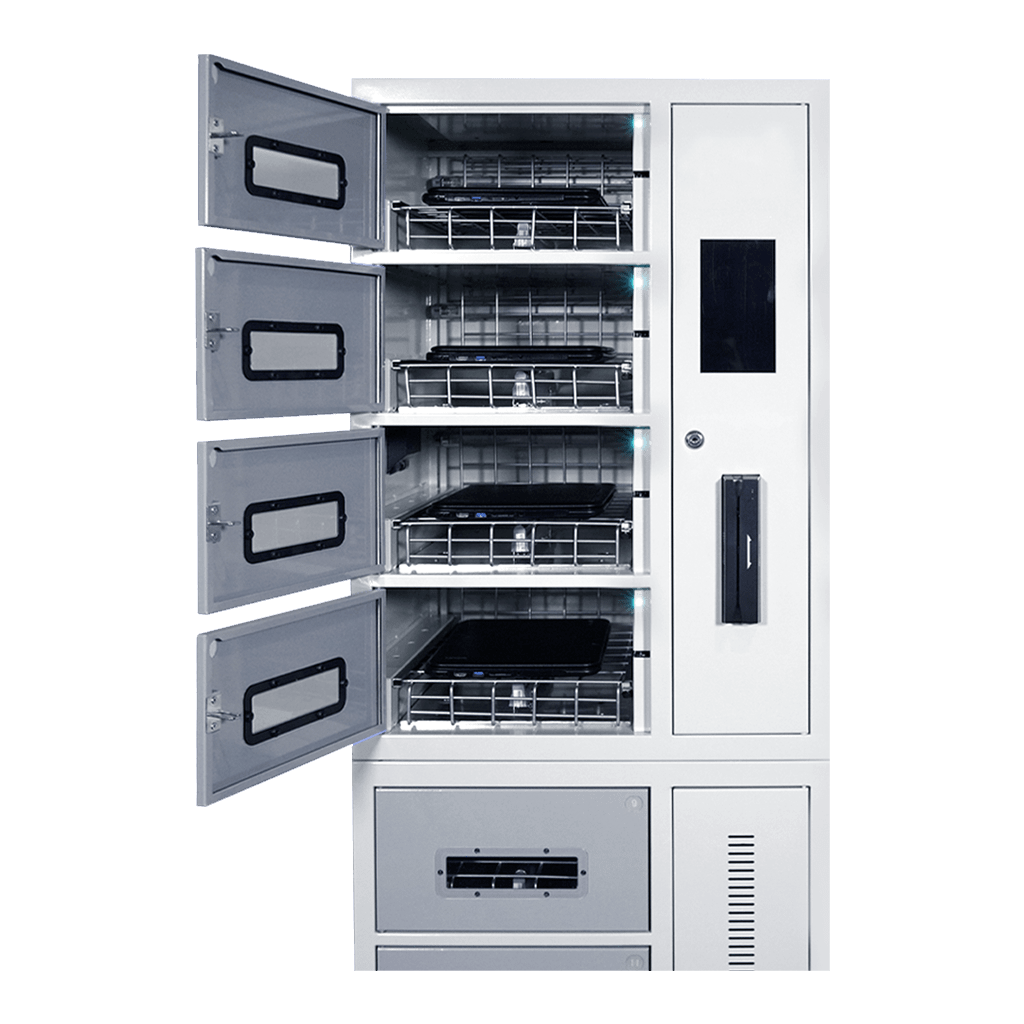 8 Bay UV-C Charging Locker with RFID Lock & Contact-less Access. Securely sanitize charge and deploy