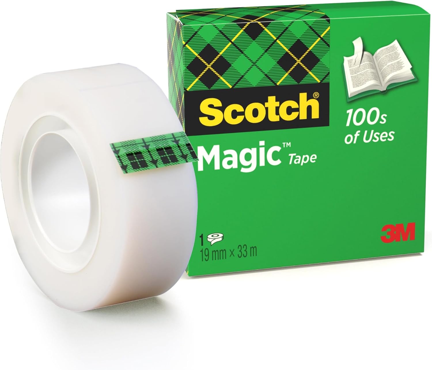 | Brand Scotch Colour Transparent Material Plastique Number of items 1 Recommended uses for product Packaging About this item TRUSTED 3M ADHESIVE TECHNOLOGY: The Scotch Brand's matte-finish invisible tape uses trusted 3M adhesive technology to bond tightly with paper ORIGINAL MATTE FINISH, INVISIBLE TAPE: Scotch Magic Tape is frosty on the roll, but disappears when applied on most paper 100'S OF USES: Perfect for permanent paper mending, repairing documents, wrapping gifts, sealing envelopes, mending photos, labelling containers, and more PERFECT FOR LABELLING: Can be written on by pen, pencil or marker EASY TO USE: The strong sticky tape comes off the roll smoothly, is easy to unwind, tear, apply, and handle REFILL, REUSE & REPEAT: Scotch Magic Tape refill rolls are compatible with Scotch desktop dispensers for easy use and can also be used alone |